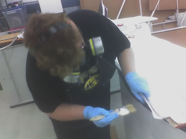 Saturate a natural bristle brush with MEK. |