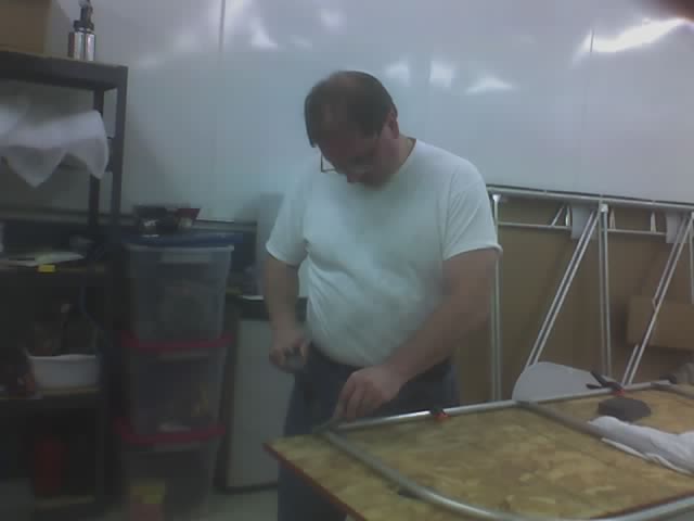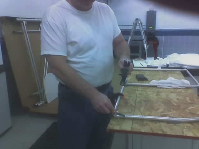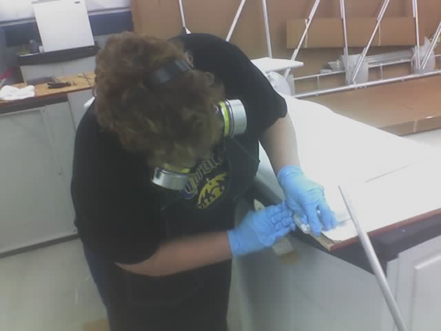 Mark each hole to be drilled with a pencil/pen or other instrument that will not damage the threads of the fabric. Then melt out a hole with a hot iron where any drilling is to take place. A soldering iron with a fine tip dedicated to this purpose does a good job. Drilling through the fabric risks a tear that can continue well past the hole at a later date. Better still is to drill the holes before adding the fabric, which is what we actually did per Don Zank's suggestion. |
